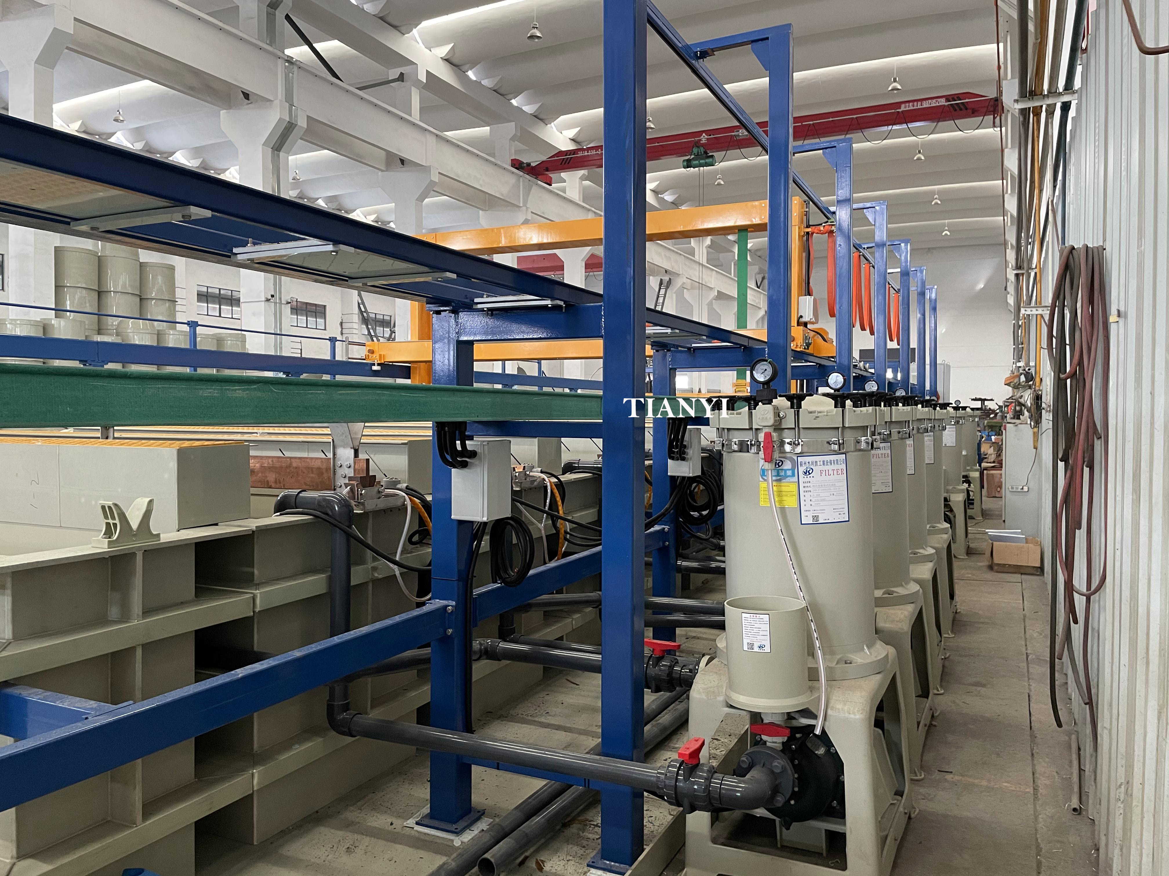 Copper platingline is used for electroplating copper onto conductive metal substrates toimprove electrical conductivity, adhesion, and surface characteristics. Itprovides uniform copper deposition suitable for electronic components,connectors, printed circuit applications, and various industrial parts. Thesystem can be configured as rack, barrel, or continuous type, and is availablein manual, semi-automatic, or fully automated versions.