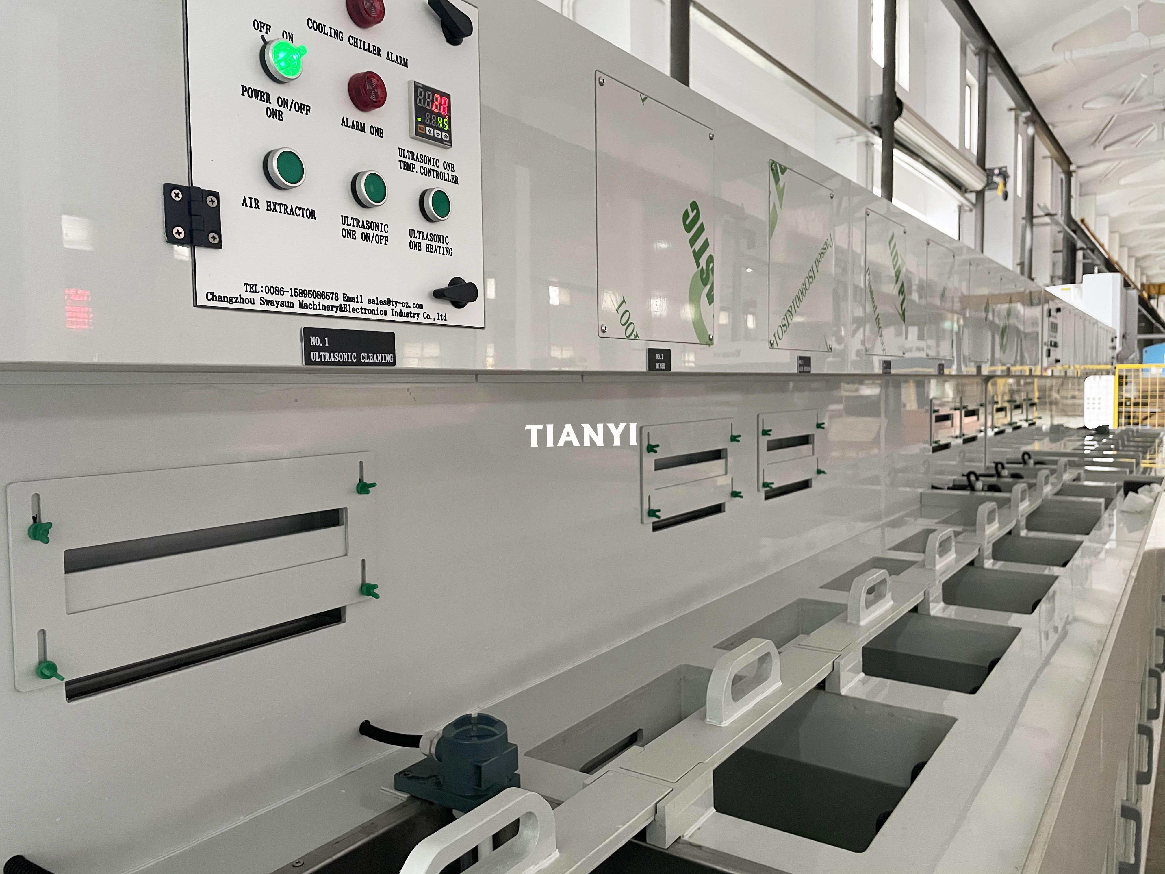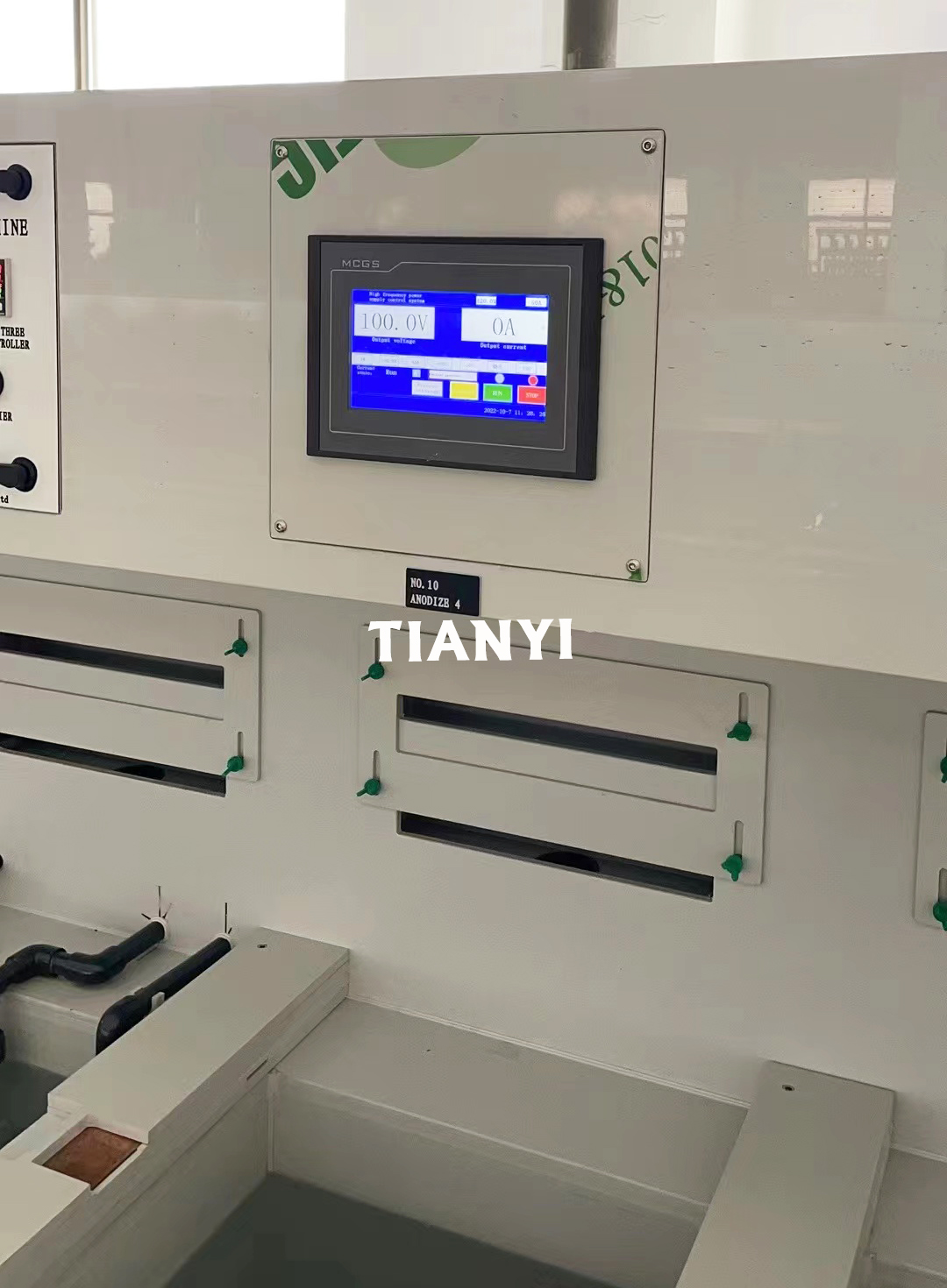Anodizing plating machine process include Loading → Ultrasonic cleaning → Rinse→ Acid etching → Rinse → Anodizing → Rinse → Hot water rinse → Unloading